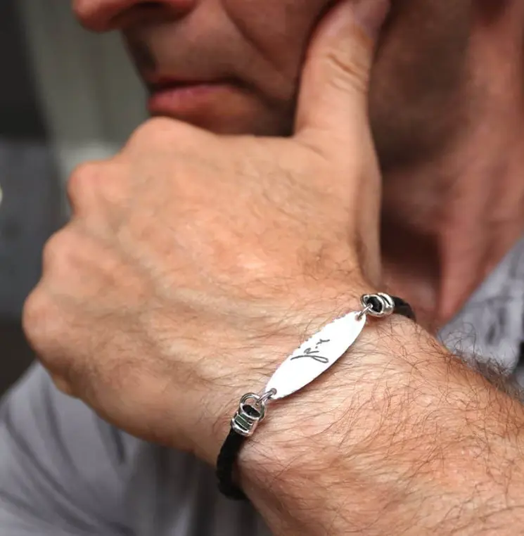 צמיד בעיצוב אישי לגבר עם חריטה של חתימה אישית