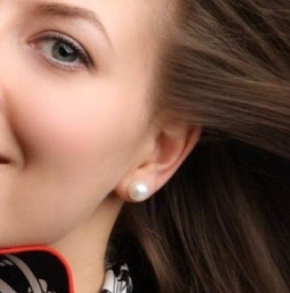 עגילי פנינה גדולים, צמודים לאוזן. איכות של פנינה AAA וגודל של פנינה 9-10 מיימ